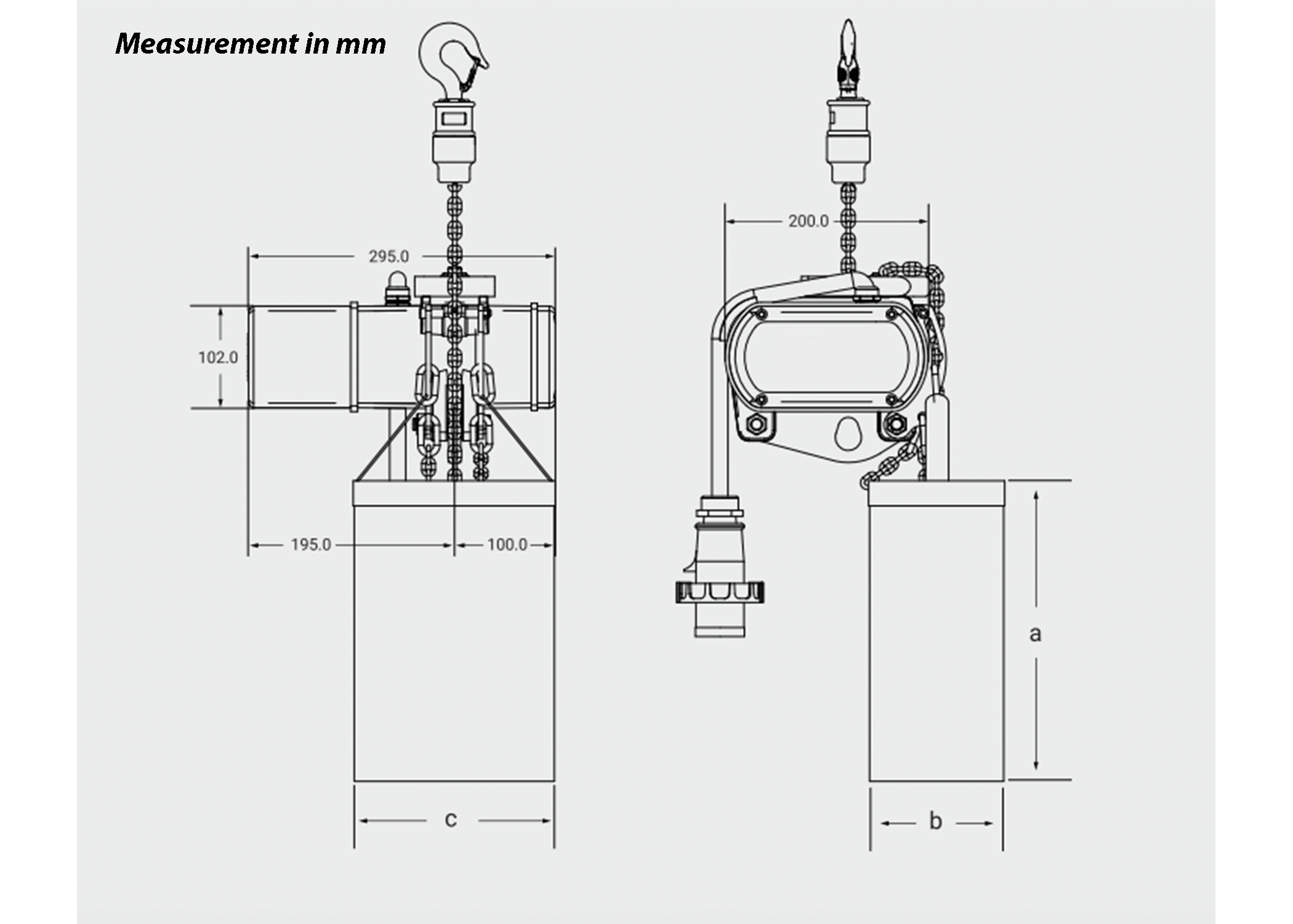 • Powered via: 4 or 8 Channel Electric Hoist Controllers (See product pages for more info)