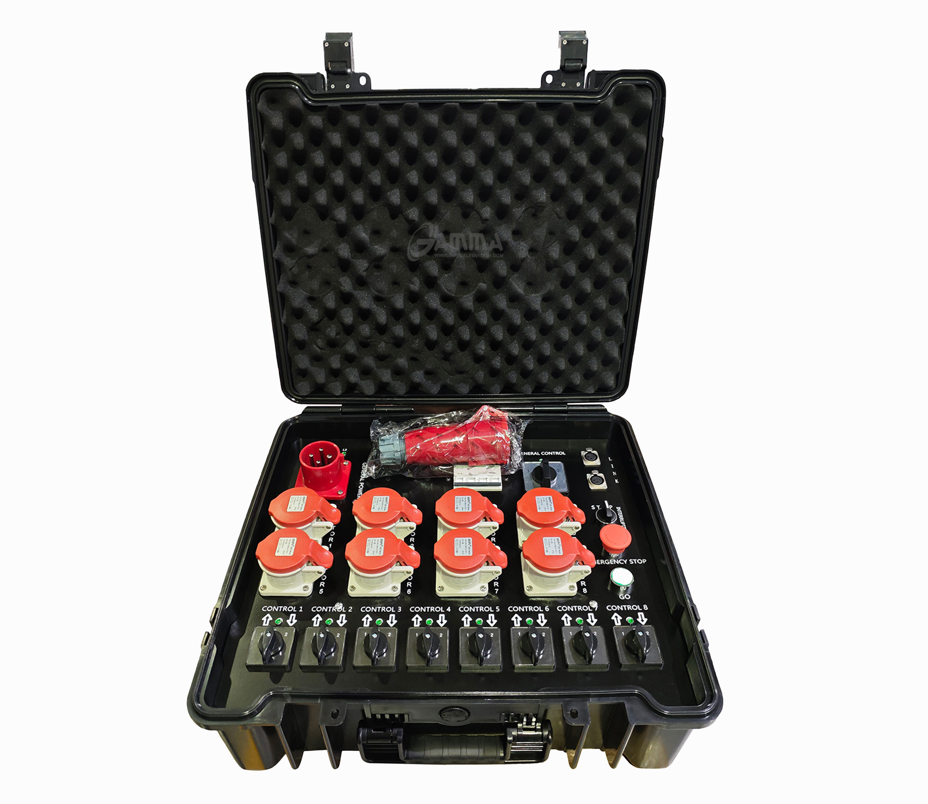 The Electric Hoist Controllers are offered in both a 4 channel and 8 channel model. This allows for conveniently operating either 4 or 8 motors. The compact size and durable plastic flight case makes it convenient to transport and ideal for touring.